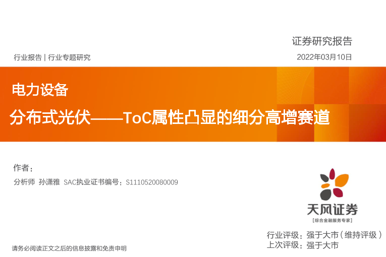 【天风证券】【20220310】电力设备行业:ToC属性凸显的细分高增赛道,分布式光伏-33页