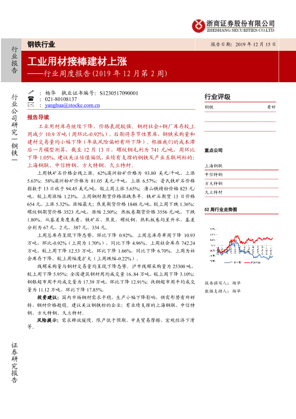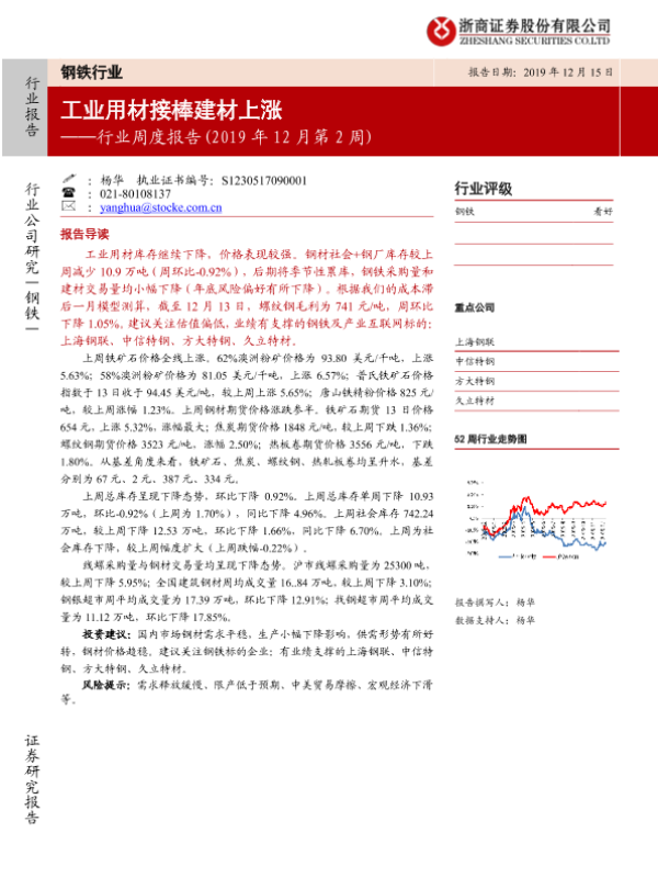 【浙商证券】【20191215】20191215-浙商证券-钢铁行业周度报告(2019年12月第2周):工业用材接棒建材上涨-16页
