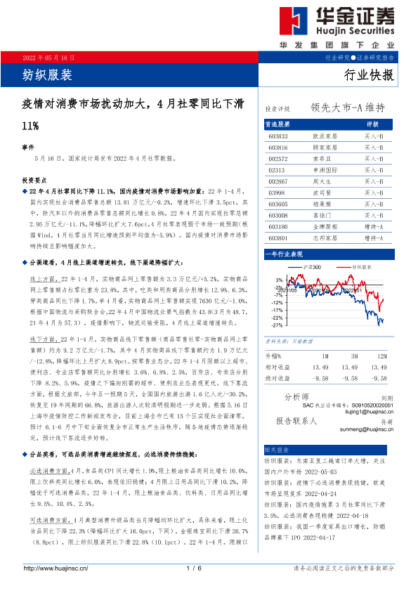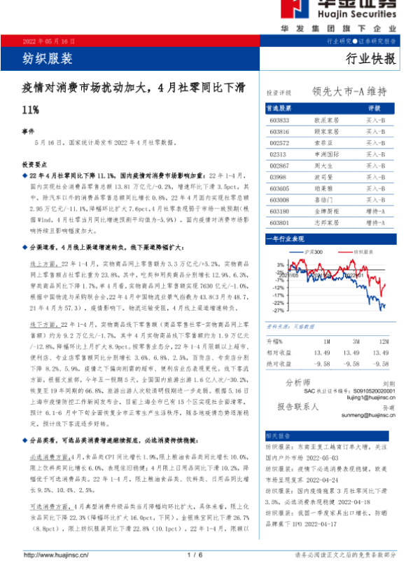 【华金证券】【20220516】疫情对消费市场扰动加大,4月社零同比下滑11%-6页
