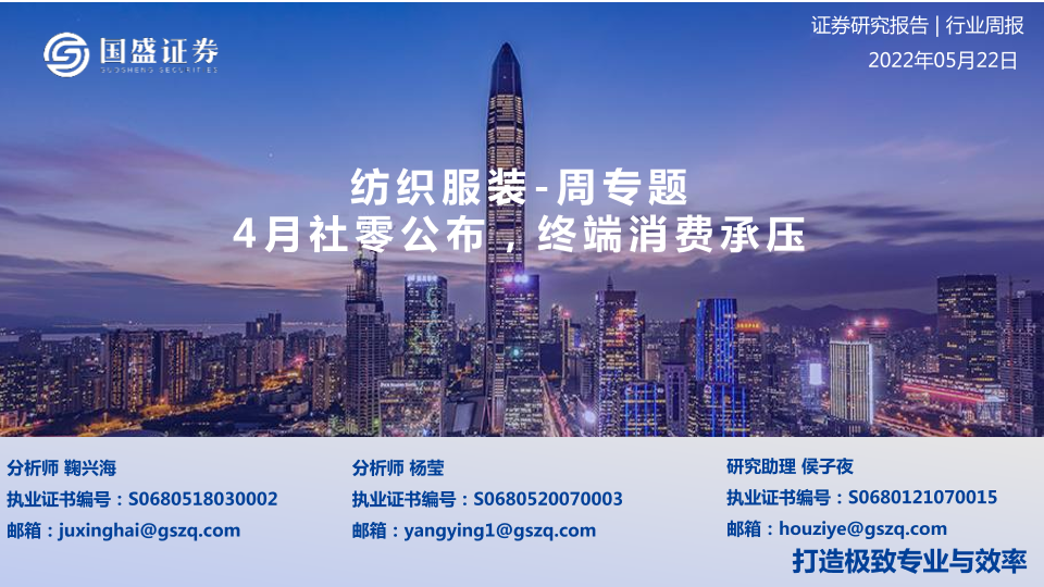 【国盛证券】【20220522】纺织服装-周与题:4月社零公布,终端消费承压-12页