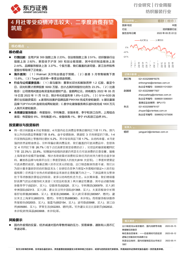 【东方证券】【20220522】20220522-东方证券-纺织服装行业周报:4月社零受疫情冲击较大,二季度消费有望筑底-8页