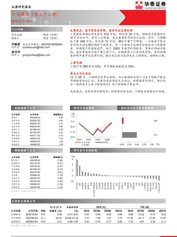 【华泰证券】【20191229】20191229-华泰证券-黑色金属行业周报(第五十二周)-19页