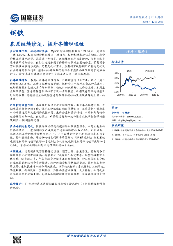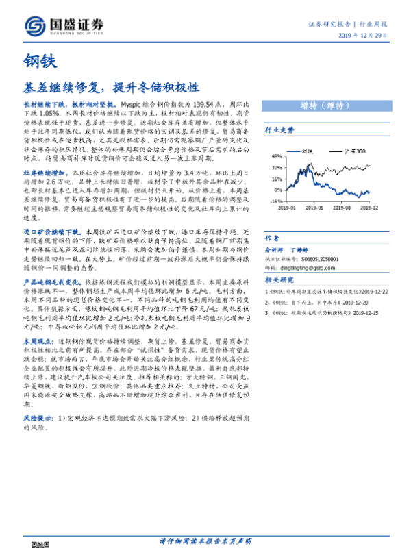 【国盛证券】【20191229】钢铁行业周报:基差继续修复,提升冬储积极性-10页