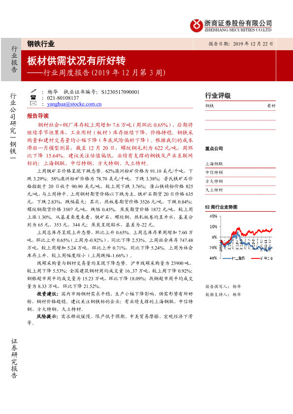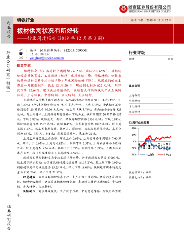 【浙商证券】【20191222】20191222-浙商证券-钢铁行业周度报告(2019年12月第3周):板材供需状况有所好转-16页