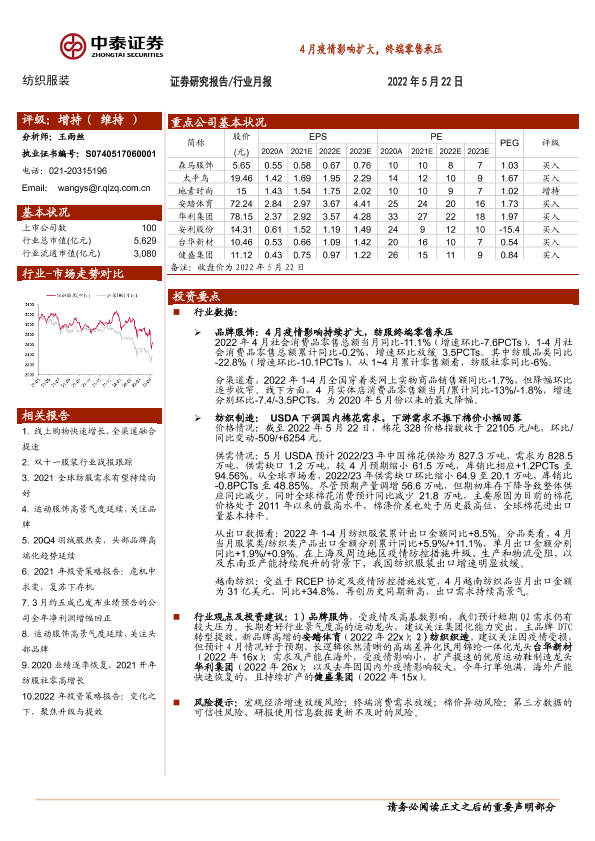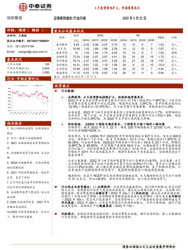 【中泰证券】【20220522】20220522-中泰证券-纺织服装行业月报:4月疫情影响扩大,终端零售承压-15页