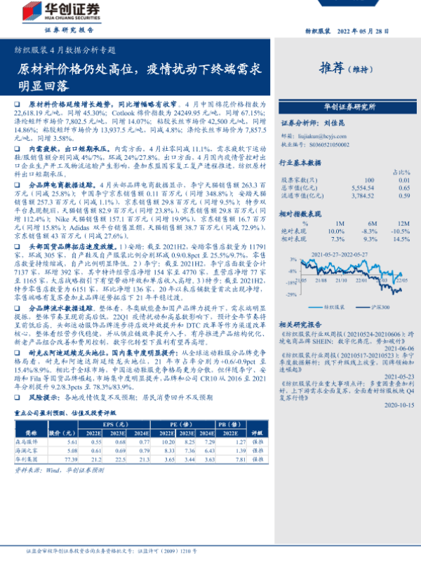 【华创证券】【20220528】20220528-华创证券-纺织服装4月数据分析专题:原材料价格仍处高位,疫情扰动下终端需求明显回落-25页