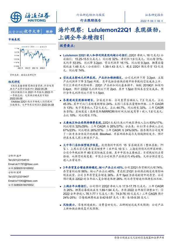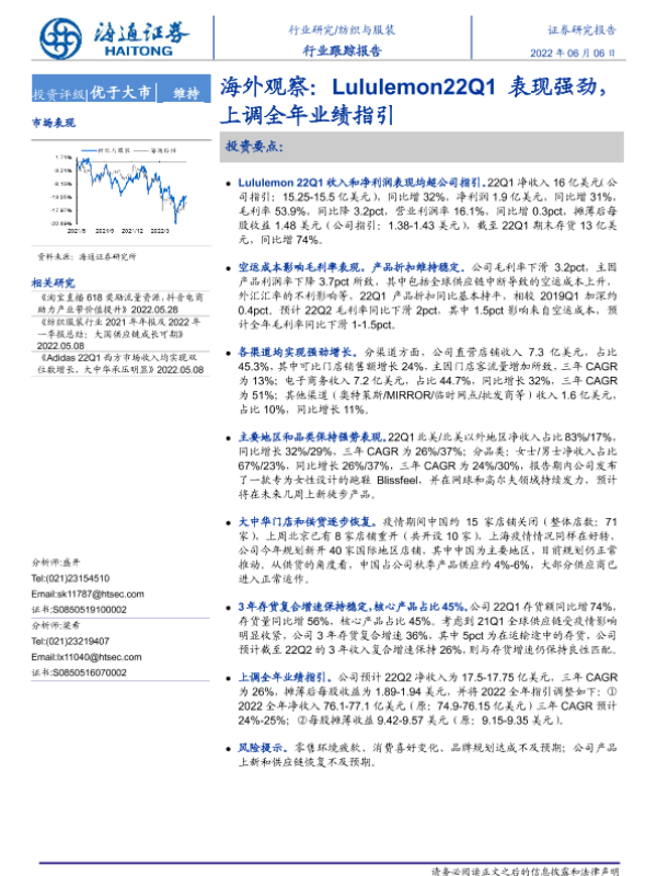 【海通证券】【20220606】纺织与服装海外观察:Lululemon22Q1表现强劲,上调全年业绩指引-2页