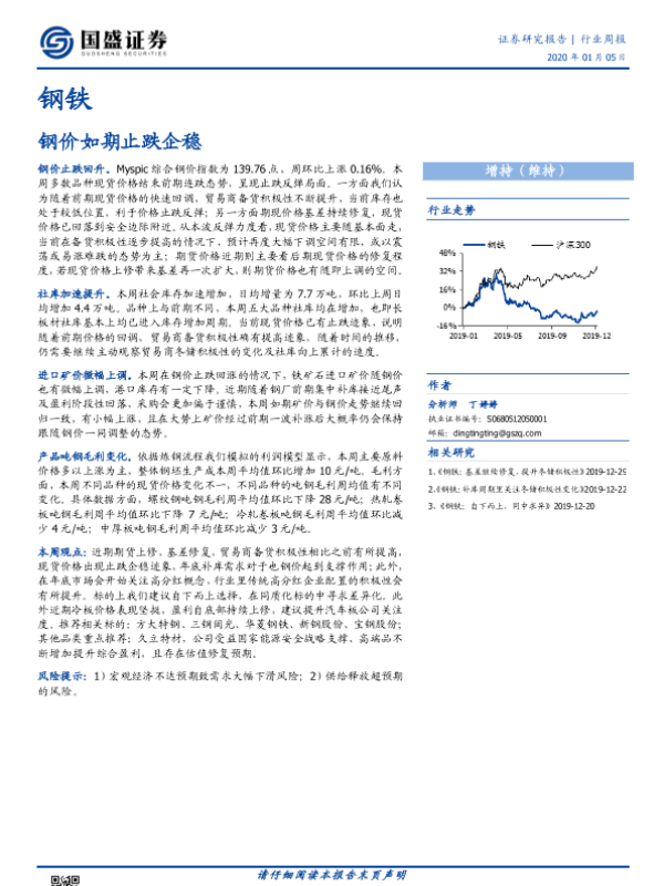 【国盛证券】【20200105】钢铁:钢价如期止跌企稳-10页