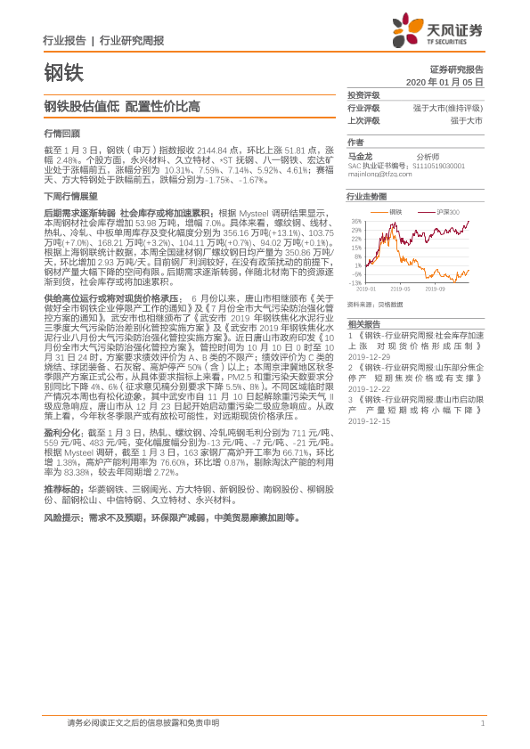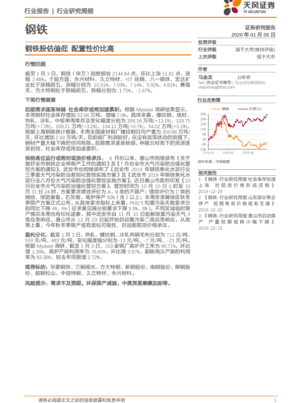 【天风证券】【20200105】20200105-天风证券-钢铁行业研究周报:钢铁股估值低 配置性价比高-12页
