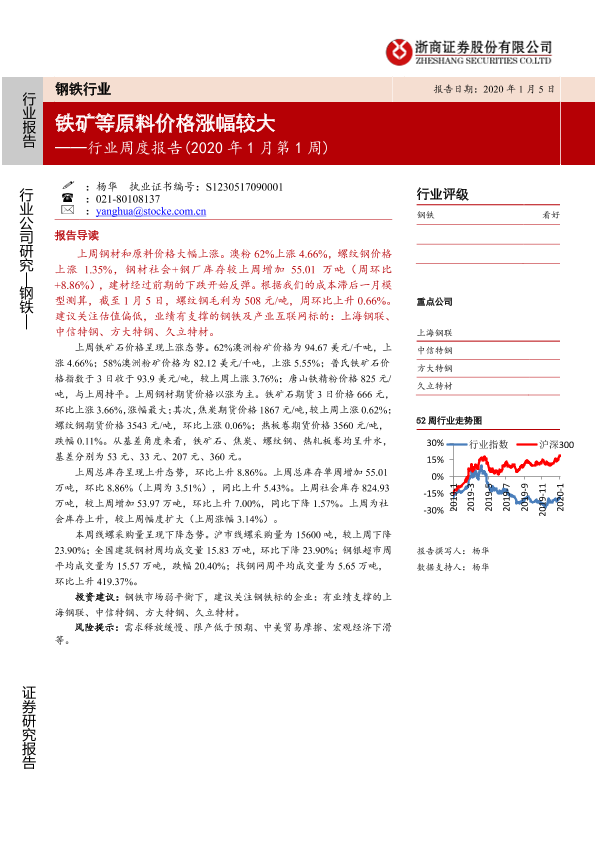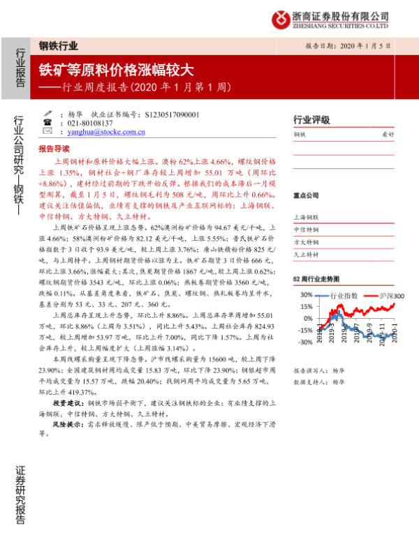【浙商证券】【20200105】20200105-浙商证券-钢铁行业周度报告(2020年1月第1周):铁矿等原料价格涨幅较大-15页