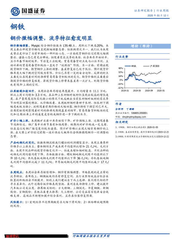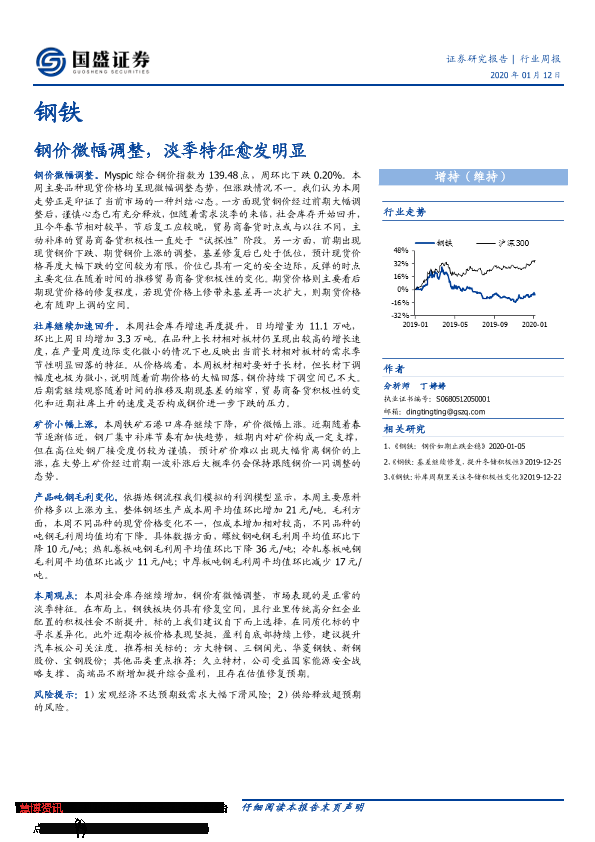 【国盛证券】【20200112】20200112-国盛证券-钢铁行业周报:钢价微幅调整,淡季特征愈发明显-10页