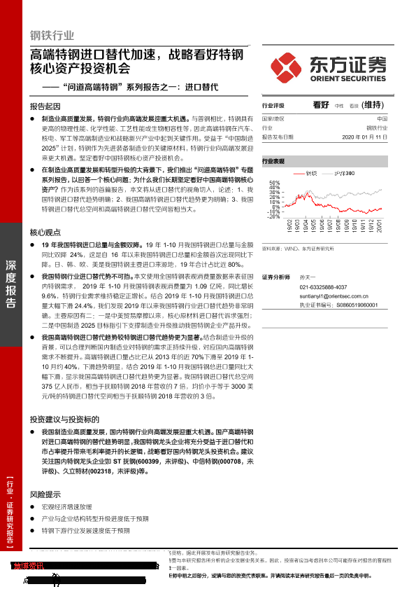 【东方证券】【20200111】20200111-东方证券-钢铁行业“问道高端特钢”系列报告之一:进口替代-高端特钢进口替代加速,战略看好特钢核心资产投资机会-17页