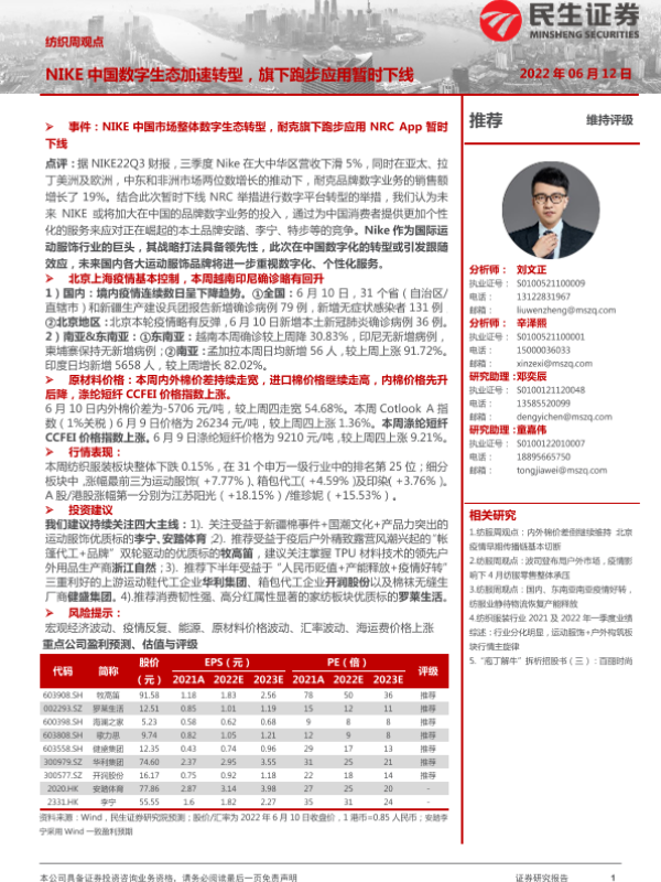 【民生证券】【20220612】纺织周观点:NIKE中国数字生态加速转型,旗下跑步应用暂时下线-24页