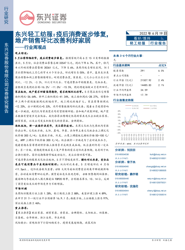 【东兴证券】【20220619】东兴轻工纺服行业周观点:疫后消费逐步修复,地产销售环比改善利好家居-12页