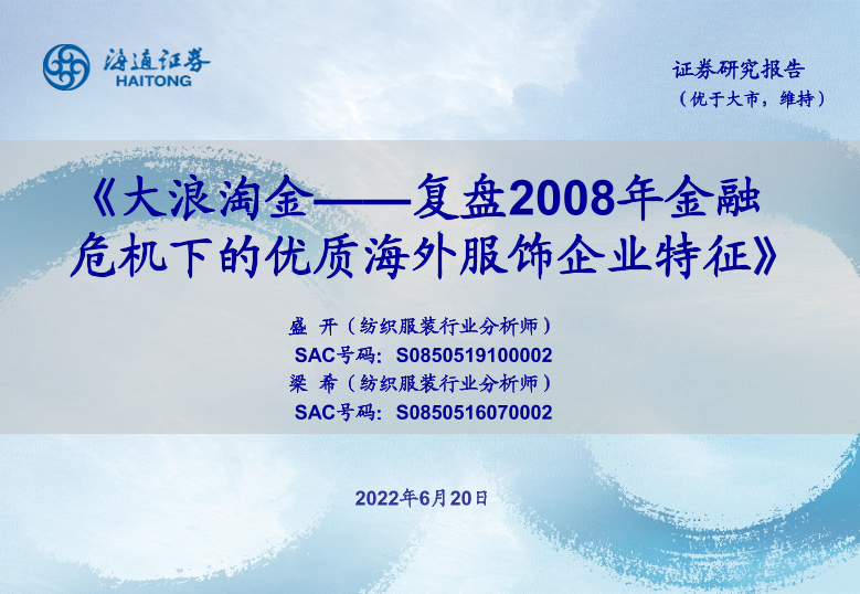 【海通证券】【20220620】大浪淘金——复盘2008年金融危机下的优质海外服饰企业特征-21页