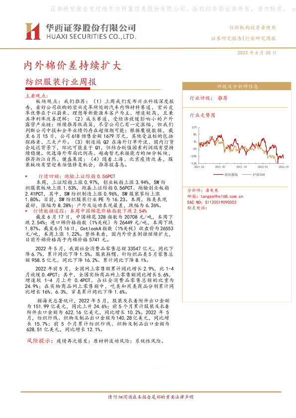 【华西证券】【20220620】纺织服装行业周报:内外棉价差持续扩大-23页