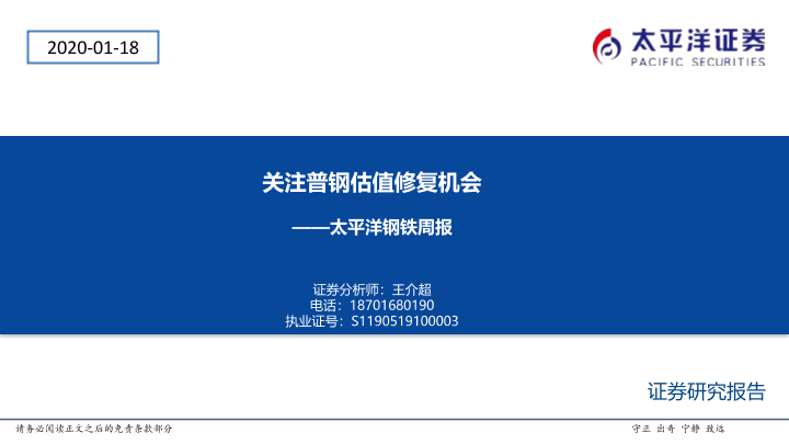 【太平洋证券】【20200118】20200118-太平洋-钢铁周报:关注普钢估值修复机会-48页