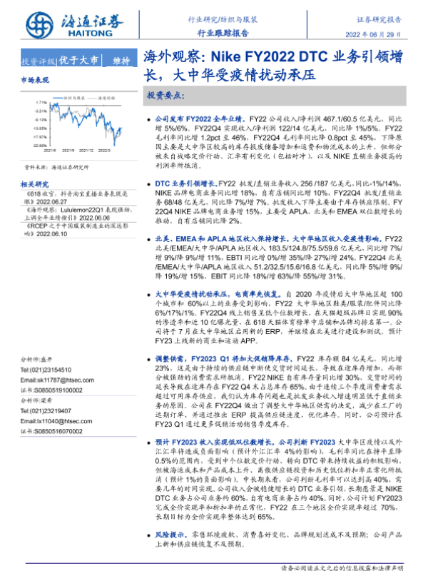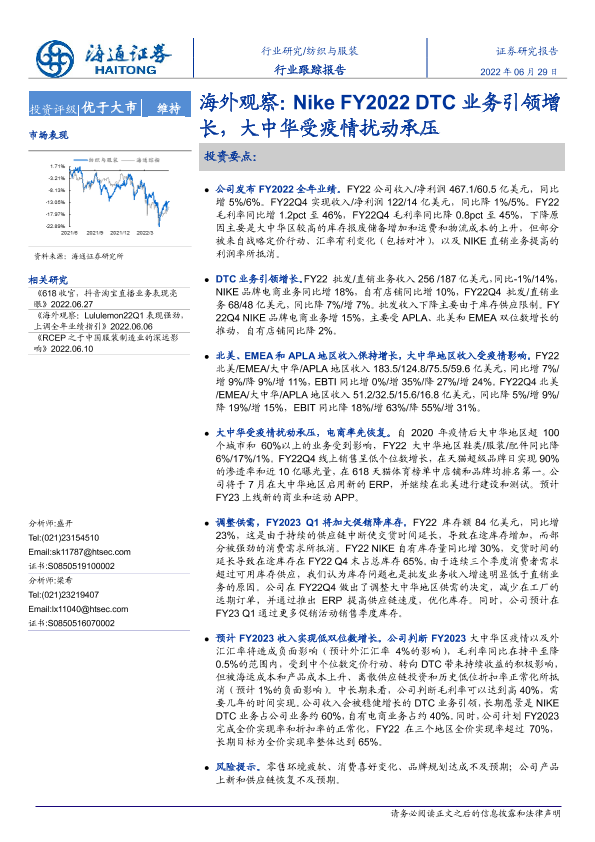 【海通证券】【20220629】海外观察:Nike FY2022 DTC业务引领增长,大中华受疫情扰动承压-2页