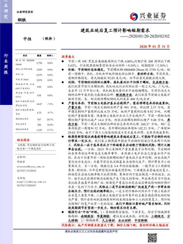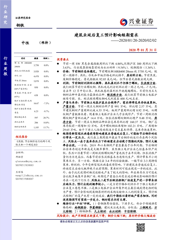 市场需求 库存分析 建筑业 疫情影响 钢铁行业