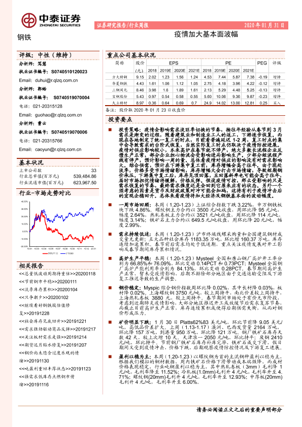 【中泰证券】【20200131】20200131-中泰证券-钢铁行业周报:疫情加大基本面波幅-13页