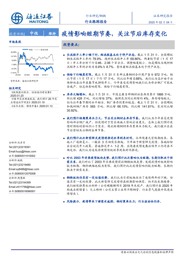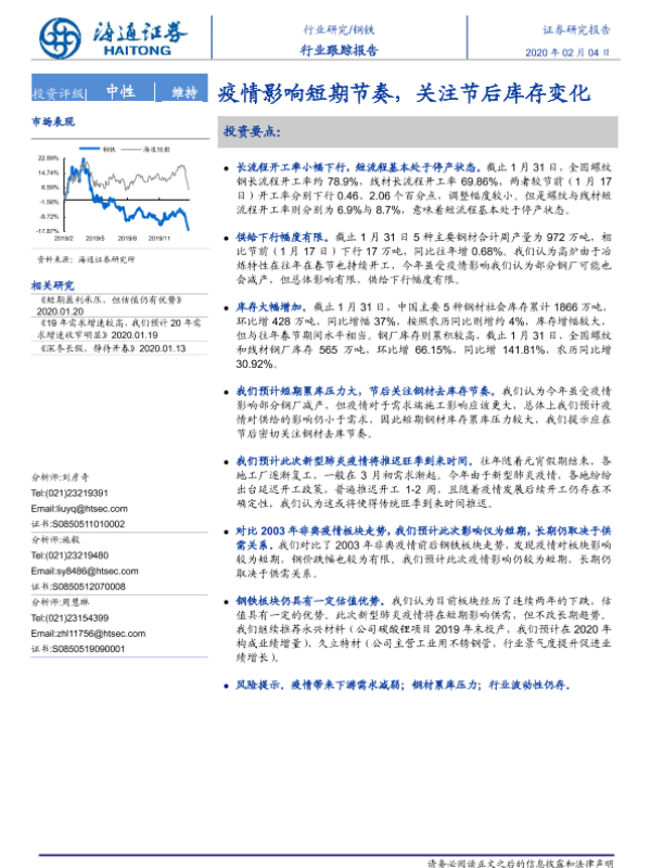 【海通证券】【20200204】钢铁行业跟踪报告:疫情影响短期节奏,关注节后库存变化-2页