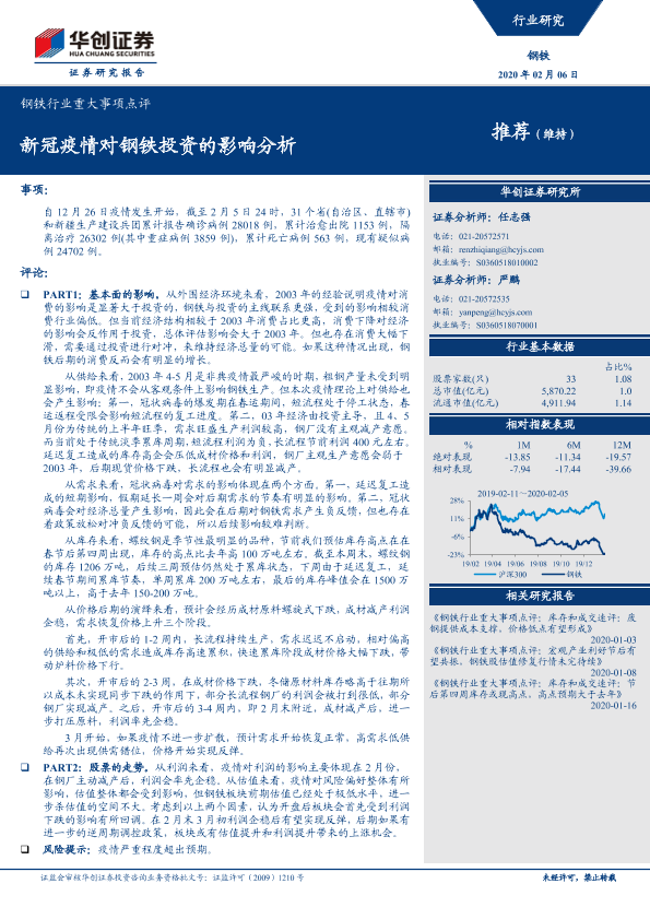 投资影响 新冠疫情 经济预测 证券分析 钢铁行业