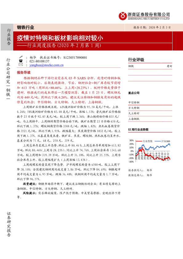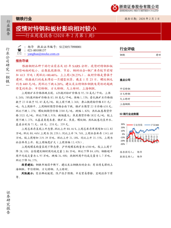 【浙商证券】【20200203】2020年2月第1周钢铁行业周度报告:疫情对特钢和板材影响相对较小-17页