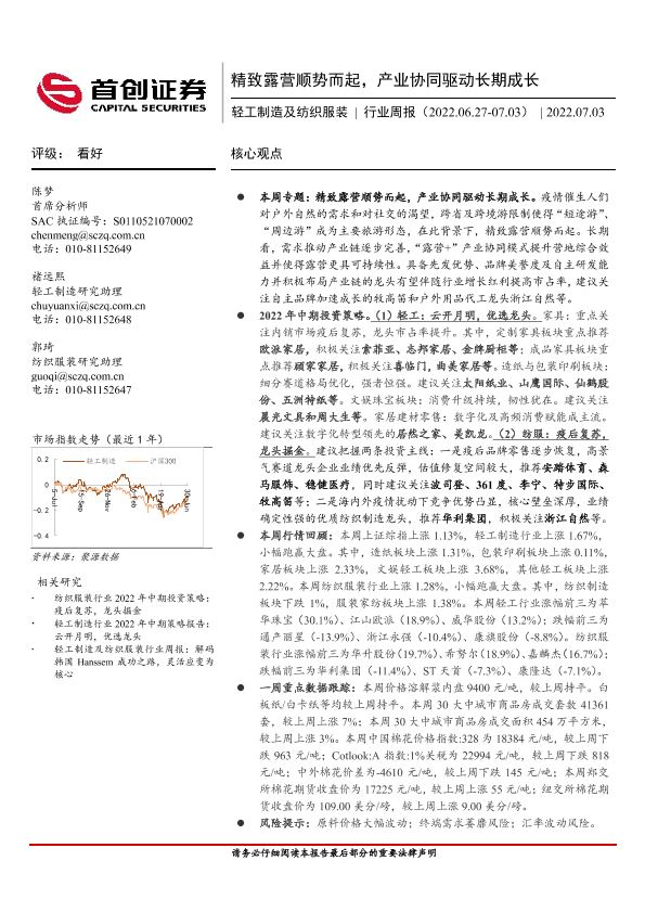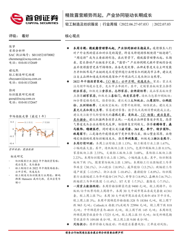 【首创证券】【20220703】20220703-首创证券-轻工制造及纺织服装行业周报:精致露营顺势而起,产业协同驱动长期成长-20页