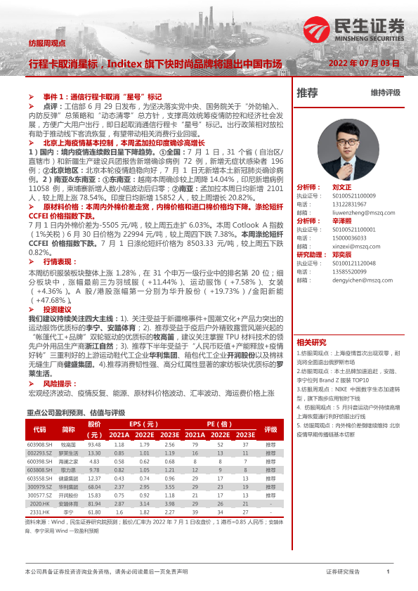 【民生证券】【20220703】20220703-民生证券-纺服周观点:行程卡取消星标,Inditex旗下快时尚品牌将退出中国市场-24页