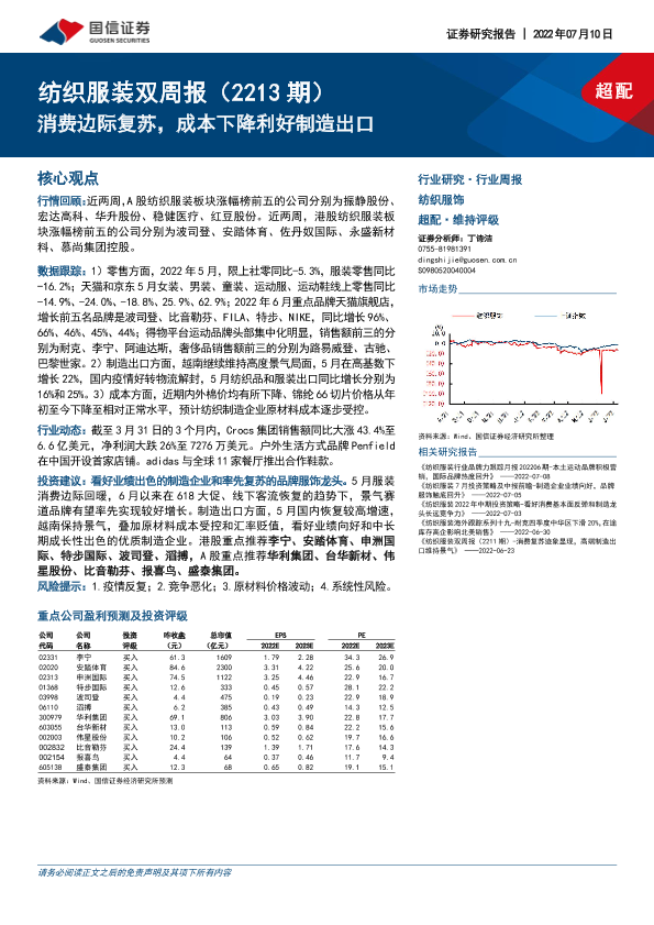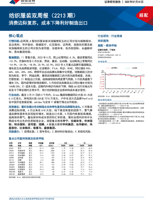 【国信证券】【20220710】纺织服装双周报(2213期):消费边际复苏,成本下降利好制造出口-13页