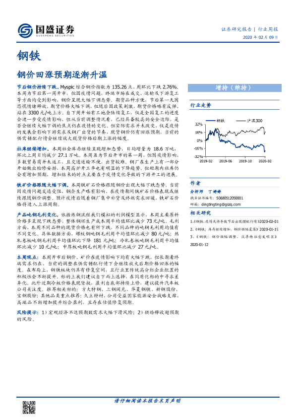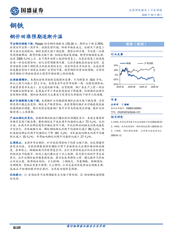 【国盛证券】【20200209】20200209-国盛证券-钢铁行业周报:钢价回涨预期逐渐升温-10页