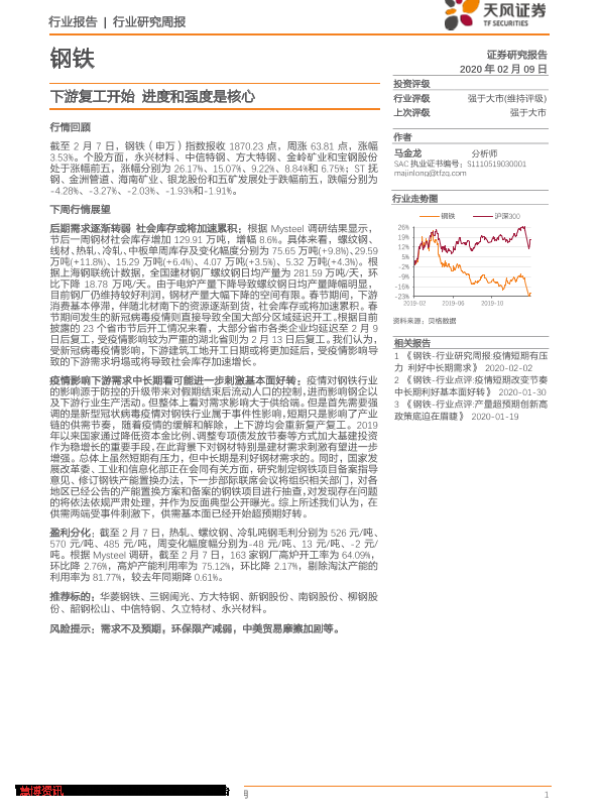 【天风证券】【20200209】20200209-天风证券-钢铁行业研究周报:下游复工开始 进度和强度是核心-13页