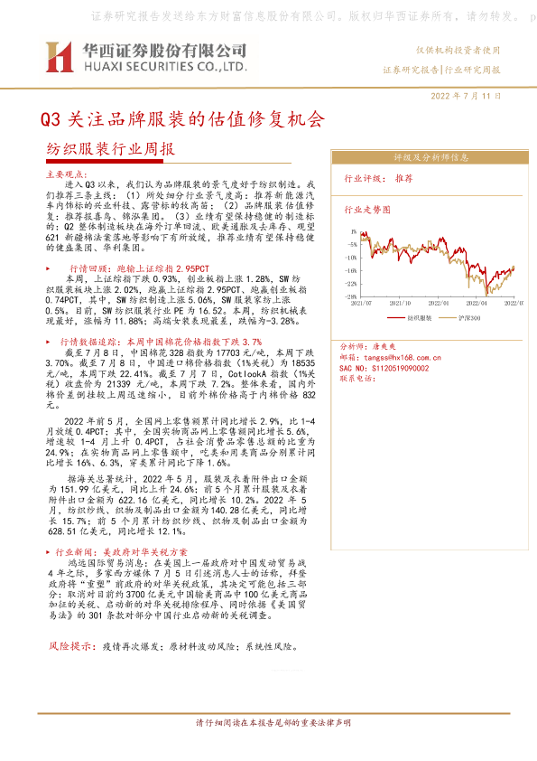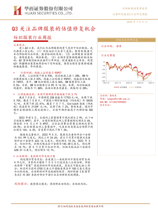 【华西证券】【20220711】Q3关注品牌服装的估值修复机会-20页