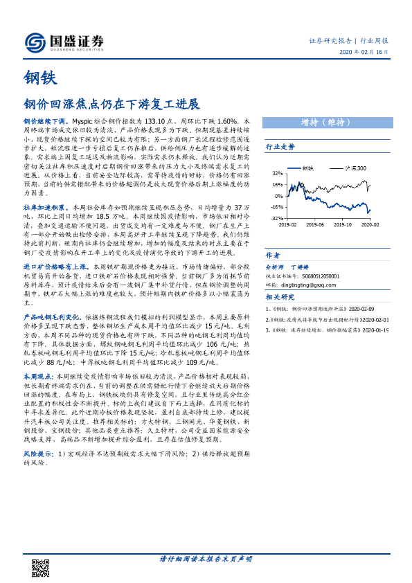 【国盛证券】【20200216】钢铁行业周报:钢价回涨焦点仍在下游复工进展-10页