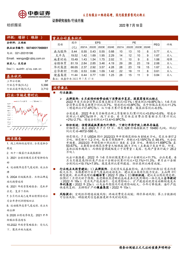 【中泰证券】【20220718】20220718-中泰证券-纺织服装行业月报:6月纺服出口维持高增,国内服装零售同比转正-16页