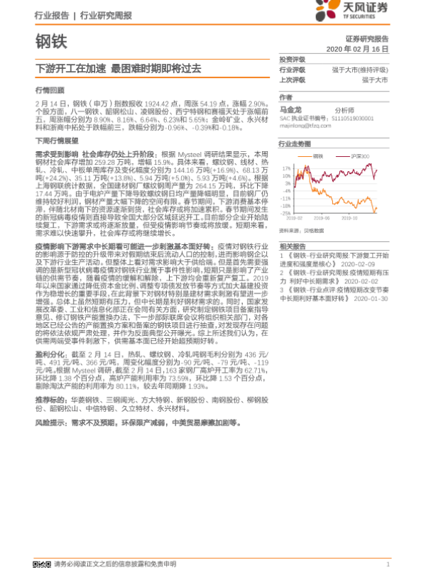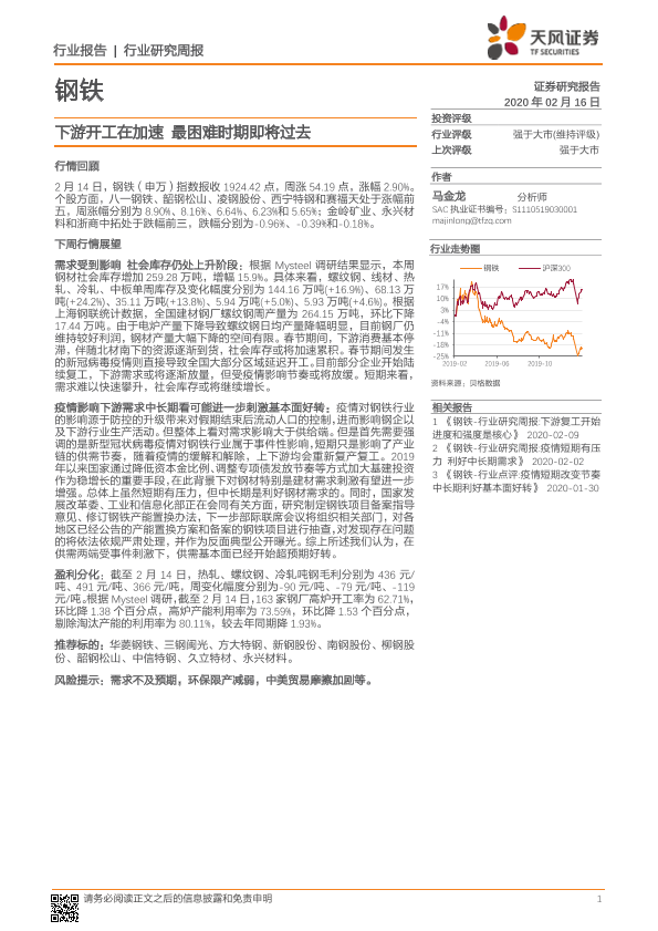 【天风证券】【20200216】20200216-天风证券-钢铁行业研究周报:下游开工在加速 最困难时期即将过去-14页