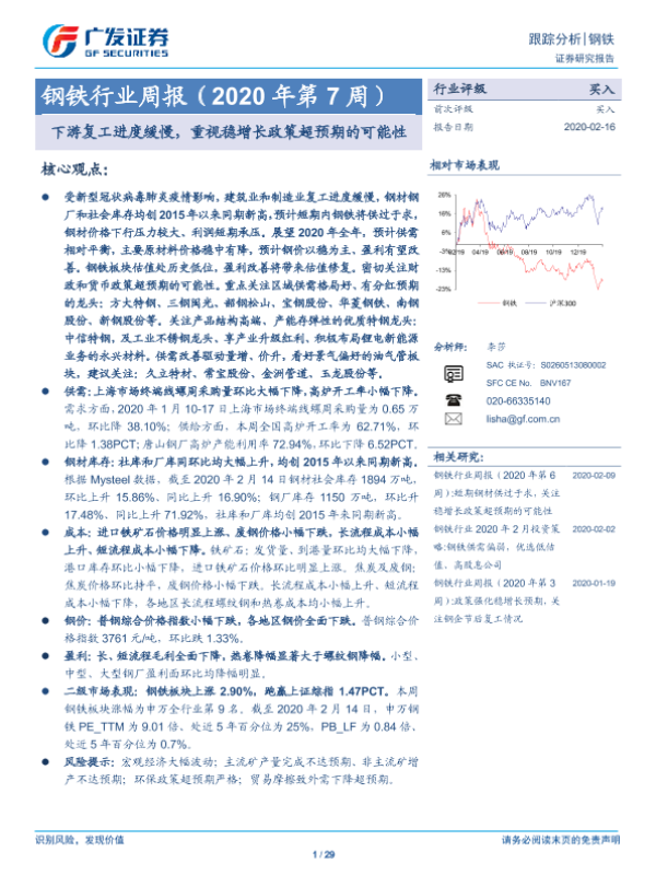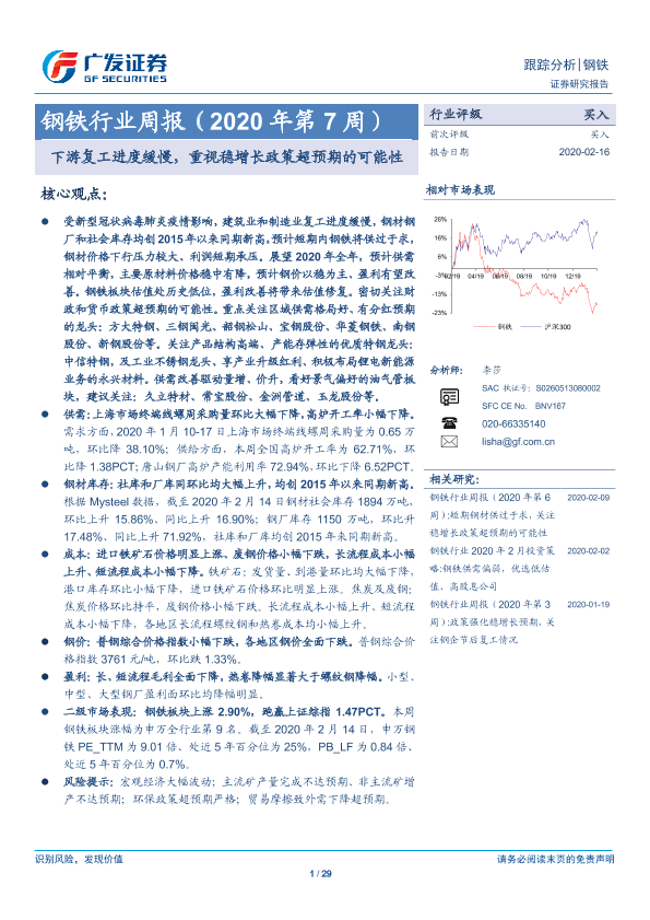 【广发证券】【20200216】2020年第7周钢铁行业周报:下游复工进度缓慢,重视稳增长政策超预期的可能性-29页