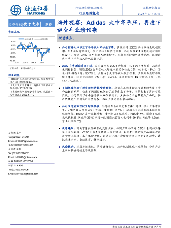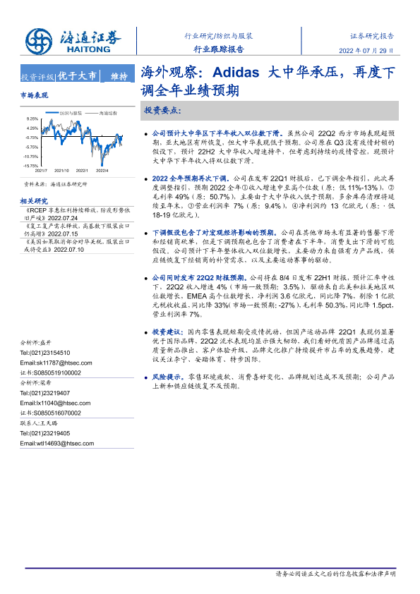 【海通证券】【20220729】20220729-海通证券-纺织与服装行业跟踪报告:海外观察:Adidas大中华承压,再度下调全年业绩预期-2页
