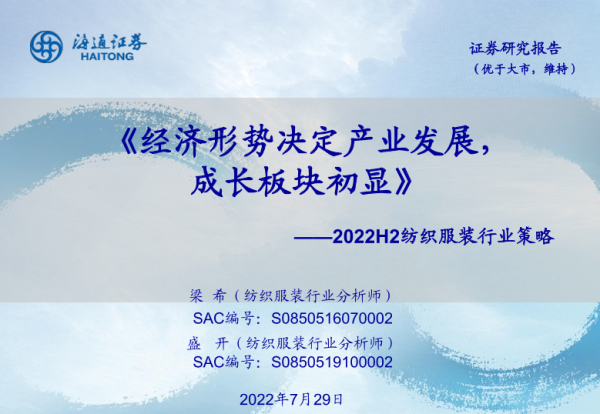 【海通证券】【20220729】2022H2纺织服装行业策略:经济形势决定产业发展,成长板块初显-45页