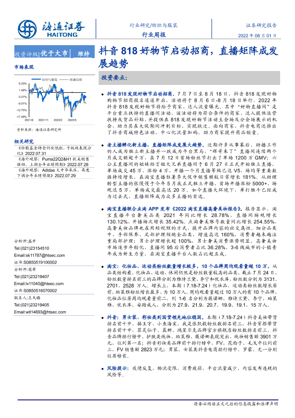 【海通证券】【20220801】20220801-海通证券-纺织与服装行业周报:抖音818好物节启动招商,直播矩阵成发展趋势-9页