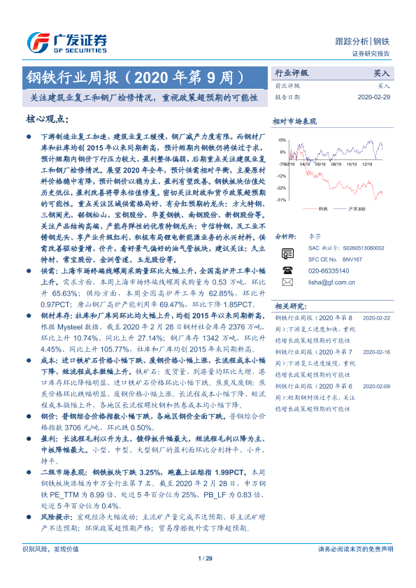 【广发证券】【20200229】20200229-广发证券-钢铁行业周报(2020年第9周):关注建筑业复工和钢厂检修情况,重视政策超预期的可能性-29页