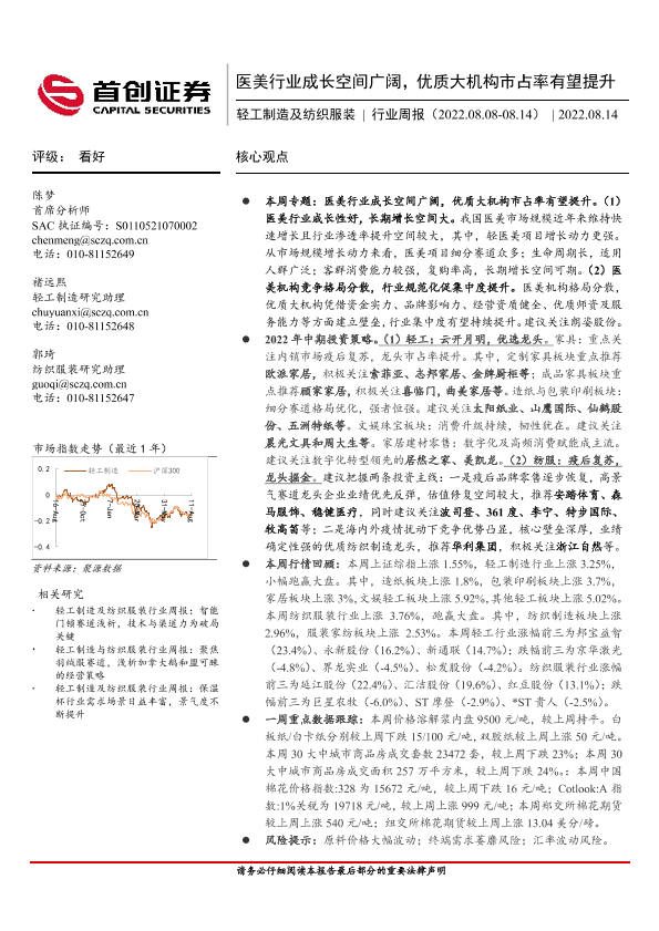 【首创证券】【20220814】轻工制造及纺织服装行业周报:医美行业成长空间广阔,优质大机构市占率有望提升-22页