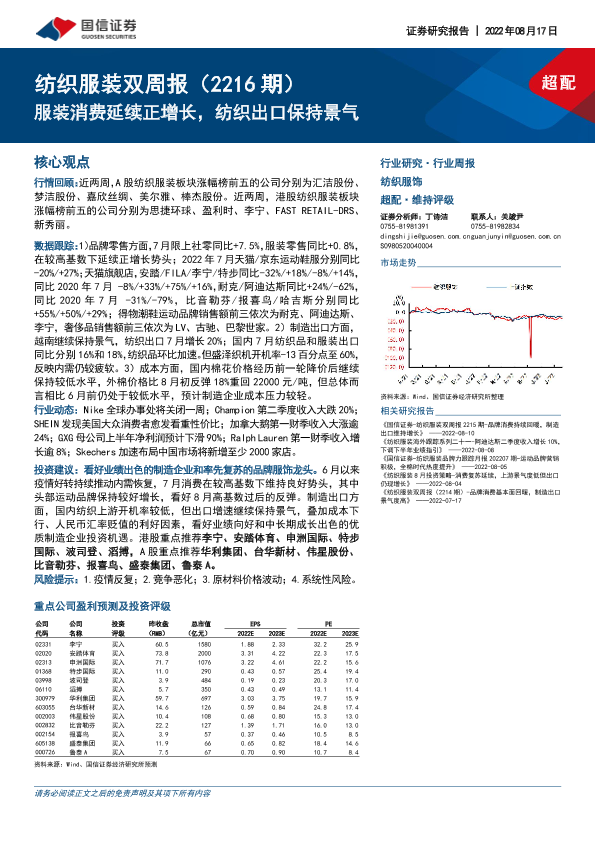 【国信证券】【20220817】20220817-国信证券-纺织服装双周报(2216期):服装消费延续正增长,纺织出口保持景气-14页