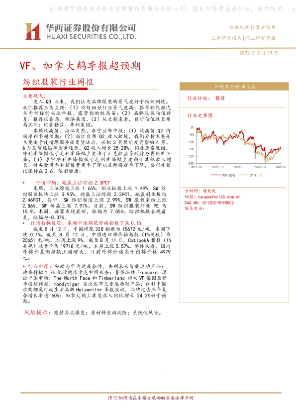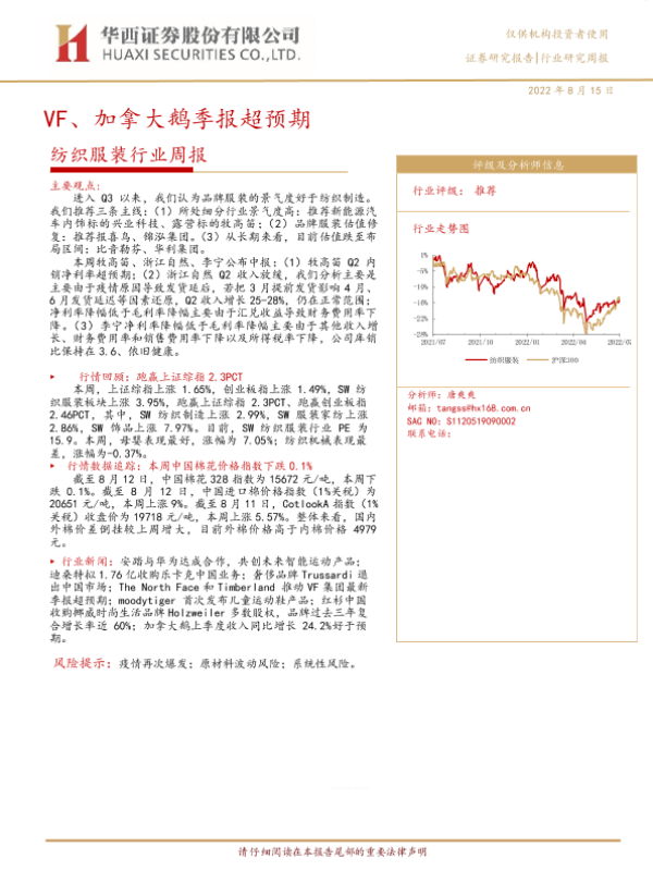 【华西证券】【20220815】纺织服装行业周报:VF、加拿大鹅季报超预期-23页