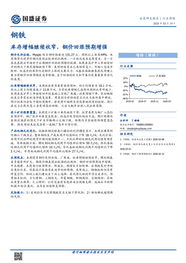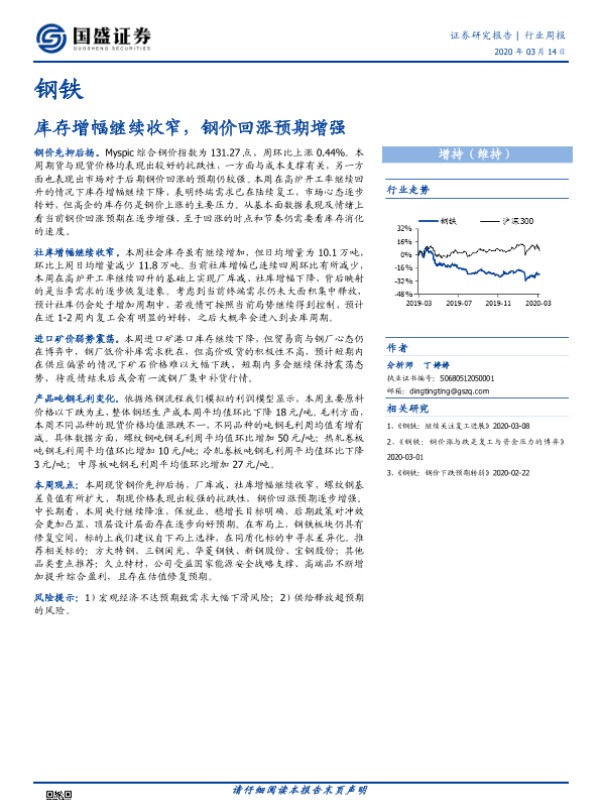 【国盛证券】【20200314】20200314-国盛证券-钢铁行业周报:库存增幅继续收窄,钢价回涨预期增强-9页