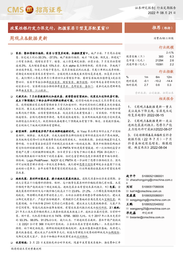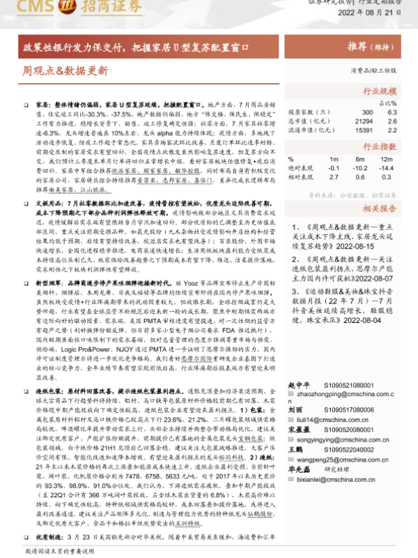 【海通证券】【20220821】轻工纺服周观点&数据更新:政策性银行发力保交付,把握家居U型复苏配置窗口-18页