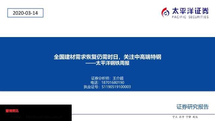 【太平洋证券】【20200314】全国建材需求恢复仍需时日,关注中高端特钢-43页