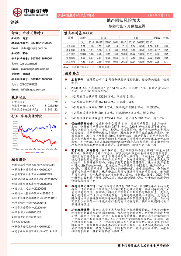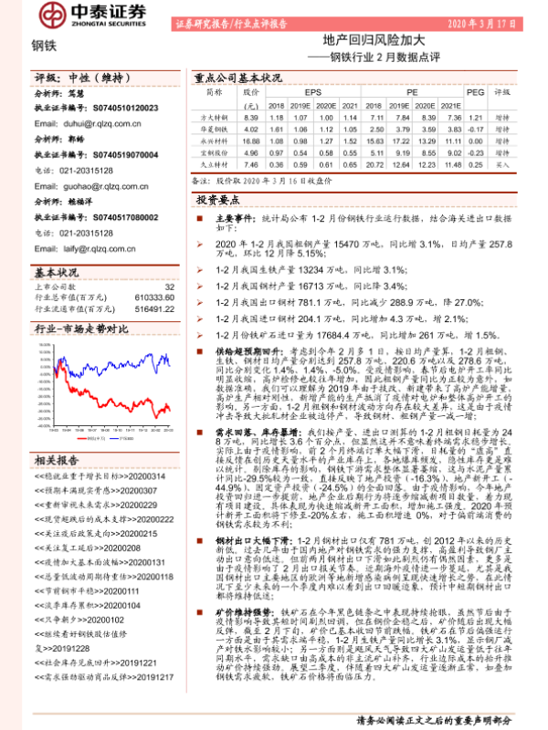 【中泰证券】【20200317】钢铁行业2月数据点评:地产回归风险加大-5页