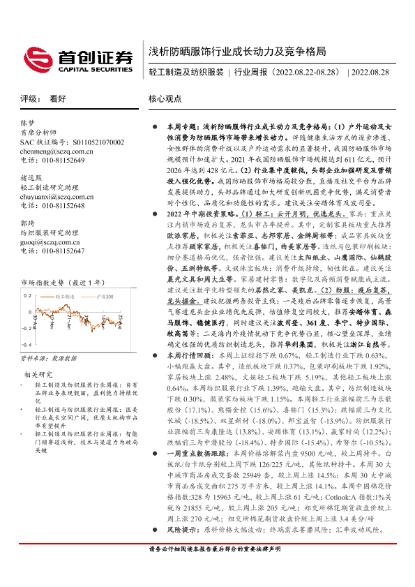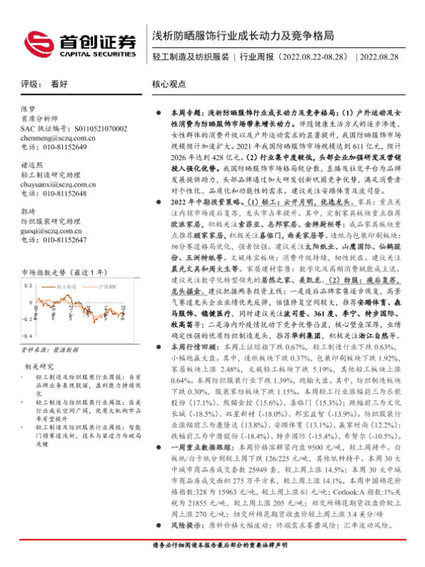 【首创证券】【20220828】轻工制造及纺织服装行业周报:浅析防晒服饰行业成长动力及竞争格局-18页