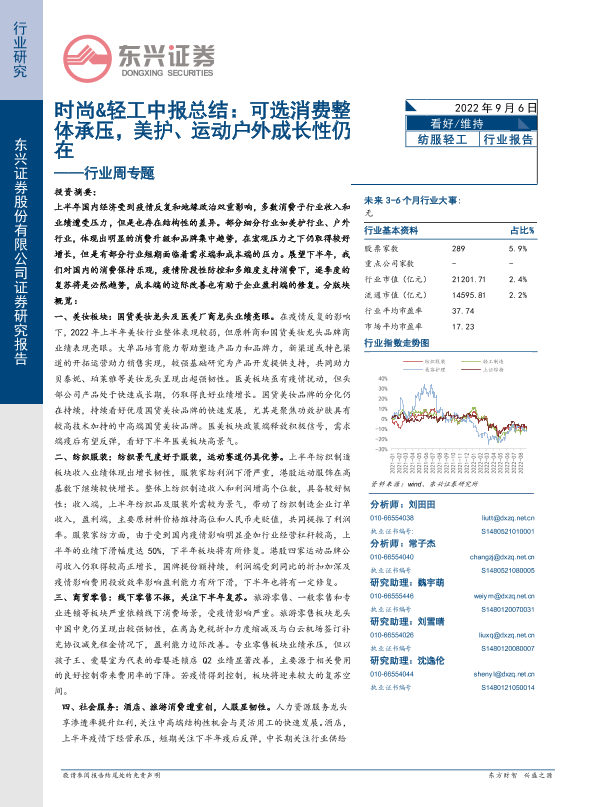 【东兴证券】【20220906】20220906-东兴证券-纺服轻工行业周专题:时尚&轻工中报总结:可选消费整体承压,美护、运动户外成长性仍在-23页